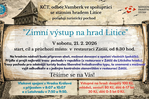 Mimořádně bude otevřený i hrad Litice a to pouze v sobotu 21. února, kdy zde proběhne „Zimní výstup na hrad“.